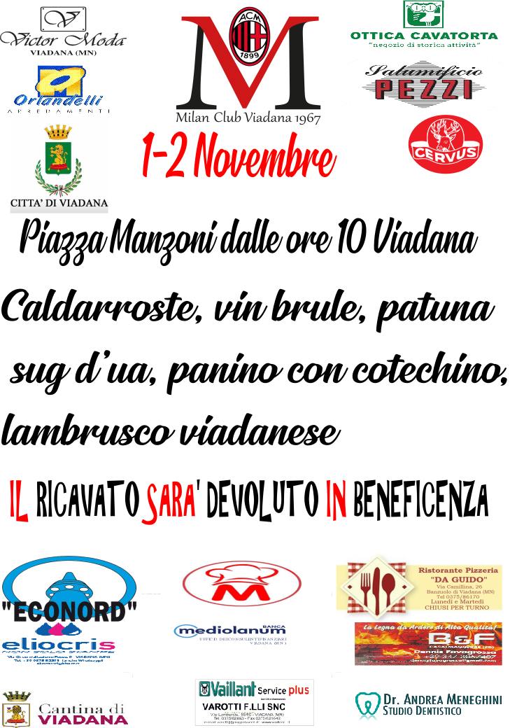 1 - 2 novembre 2025 - dalle ore 10.00 Piazza Manzoni: Caldarroste, vin brulè, patuna, sug d’ua,panino cun cutghein e soca rustida a cura del Milan Club. Il ricavato sarà devoluto in beneficenza
