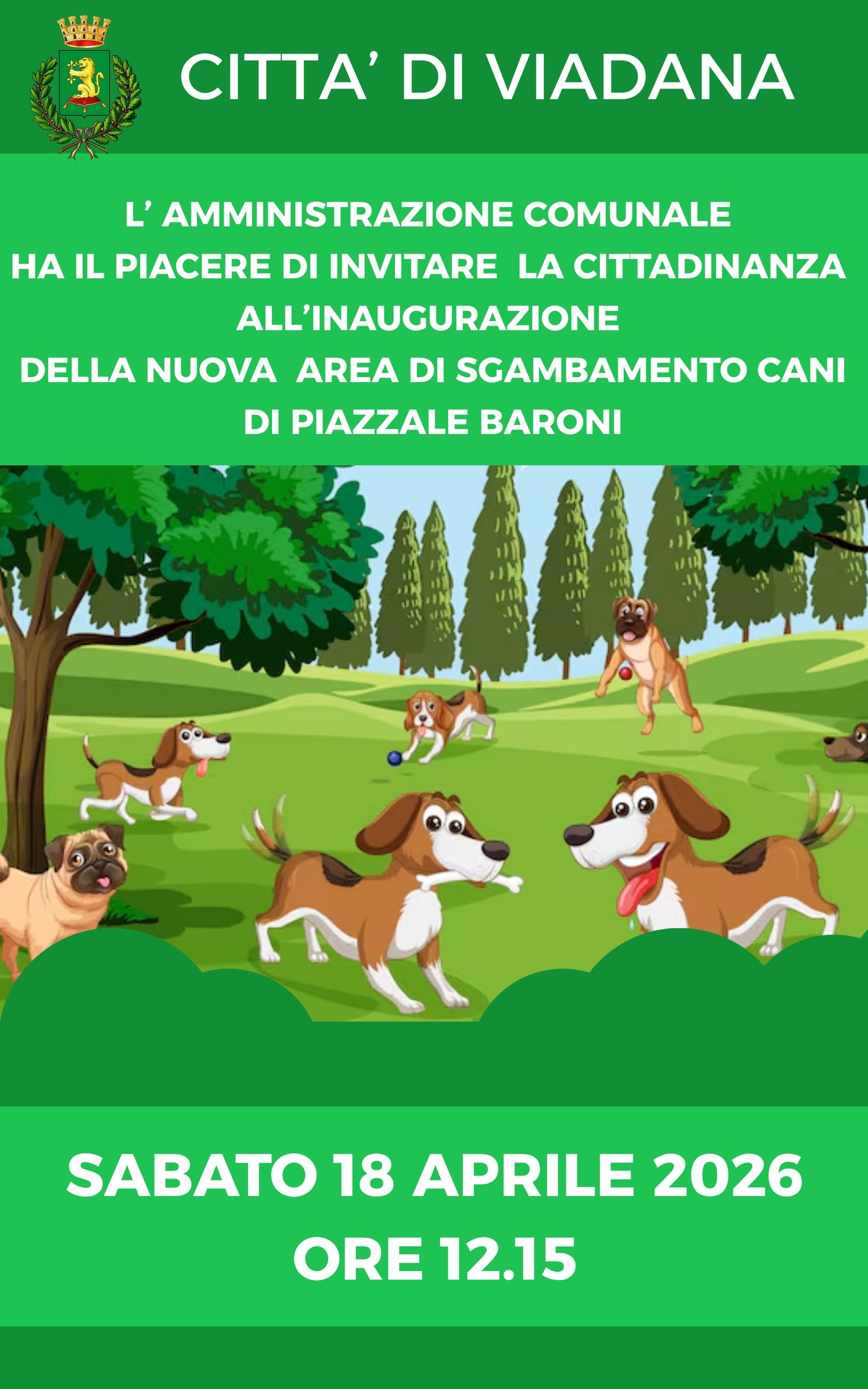 Sabato 18 aprile alle ore 12.15 si terrà l’inaugurazione ufficiale della nuova area sgambamento cani di Piazzale Baroni.